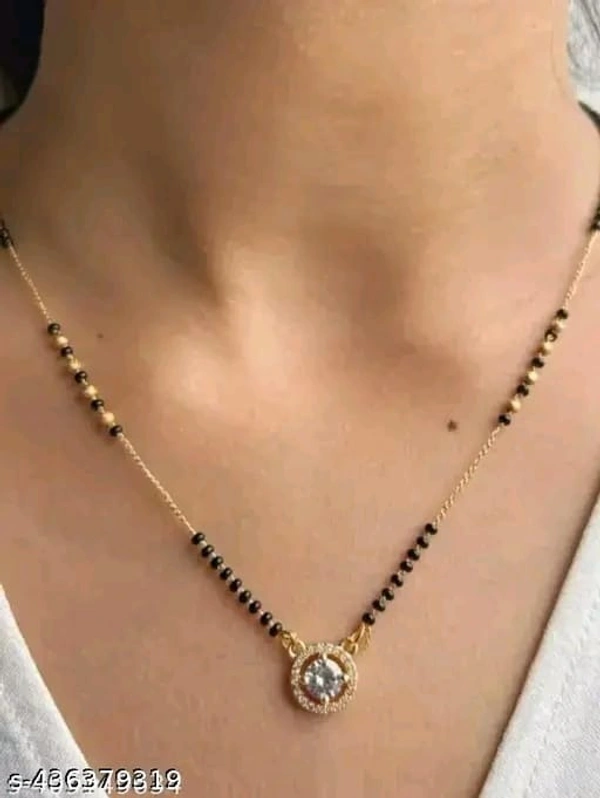 Elite Beautiful Mangalsutras Name: Elite Beautiful Mangalsutras Base Metal: Alloy Plating: Gold Plated Stone Type: Cubic Zirconia/American Diamond Sizing: Non-Adjustable Type: Single Strand Mangalsutra Net Quantity (N): 1 Sizes:Free Size Country of Origin: India