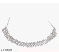 Jewellery set Name: Jewellery set Base Metal: ThreadPlating: Silver PlatedStone Type: Cubic Zirconia/American DiamondSizing: AdjustableType: Choker and EarringsNet Quantity (N): 1Country of Origin: India