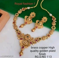 Necklace Name: Necklace Base Metal: Brass & CopperPlating: Gold PlatedStone Type: Artificial StonesSizing: AdjustableType: Necklace and EarringsNet Quantity (N): 1Golden platd copper brass Country of Origin: India