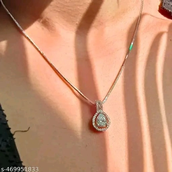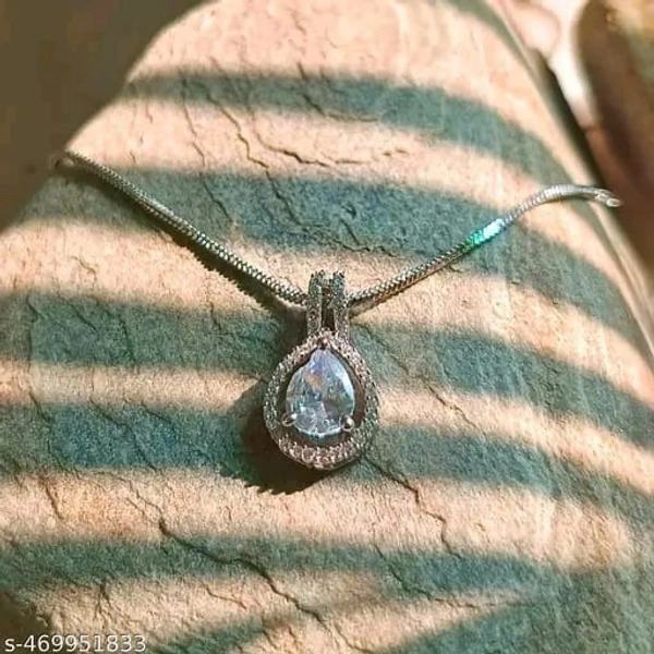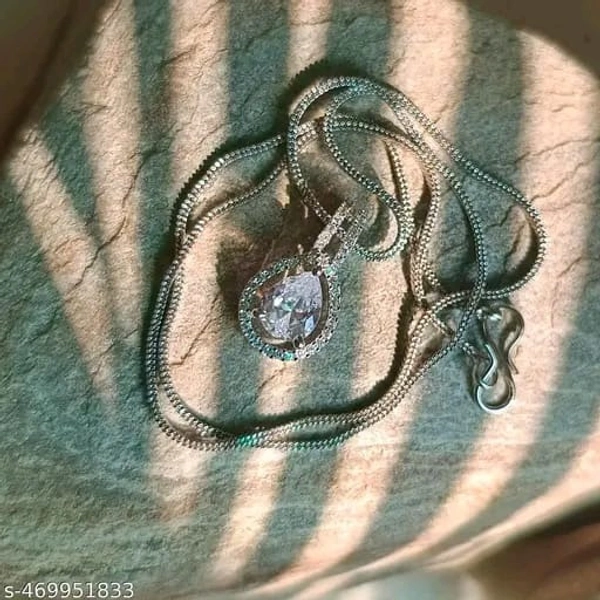 Name: Silver-Plated White AD Pendant for Women | Zircon Diamond Necklace with Chain | Stylish Jewelry